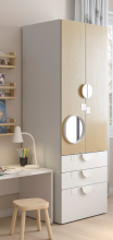 Armoire-penderie blanc et bouleau - 3 tiroirs - poignées en bois avec penderie au-dessus + quelques éléments pris séparement.