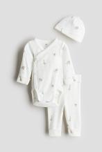 H&M Adorables. Coffret-cadeau comprenant un body, un legging et un bonnet en jersey souple, accompagnés d'un doudou en mousseline, le tout réalisé en coton de haute qualité. Body à fermeture croisée avec boutons-pression sur les côtés et à l'entrejambe pour faciliter le change. Coutures froncées autour des jambes pour plus de confort et un meilleur ajustement au niveau de la couche. Legging avec ceinture repliable à la taille et bord dépliable en bas de jambe permettant de s'adapter à la croissance de l'enfant. Bonnet avec bord replié.