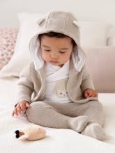 Ensemble naissance 3 pièces en point mousse - beige chiné, Bébé
