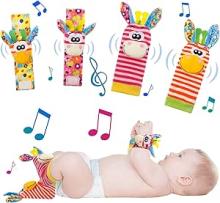 KroY PecoeD Bébé Poignet et Chaussettes Hochet, 4 Pcs Hochet Bebe Bell Strap Poignet et Pied Finder Jouets d'éveil pour Tout-petits Garçons Filles Développement Sensoriel Cadeau : Amazon.fr: Jeux et Jouets
