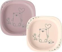 nip Green Öko Lot de 2 assiettes pour bébé et enfant, passent au micro-ondes et au lave-vaisselle, extra plates et parfaites pour les débutants, sans BPA, sans mélamine, durables, motif animal, rose