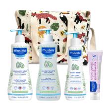 Si vous préférez, vous pouvez aussi vous rendre en pharmacie et composer vous-même une petite sélection (savon doux, crème pour le change, lait hydratant, ...) de la marque de votre choix (Mustela, Uriage, Bebio, Klorane, ...)