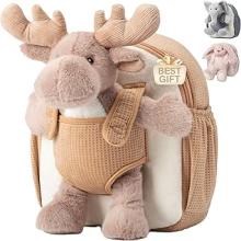 Moonkie Hug & Go Sac a Dos Enfant, Cartable Maternelle Renne avec Jouet Amovible, pour Filles & Garçon 1 2 3 Ans, Petit Sac a Dos Bebe en Peluche Douce, Cadeau Personnalisé pour Crèche & Ecole
