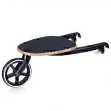 La planche à roulettes Kid Board de Cybex se fixe simplement au châssis de la poussette permettant ainsi à deux enfants de se déplacer en toute sécurité. Elle peut être rangée dans le grand panier porte-objets lorqu'elle n'est pas utilisée.