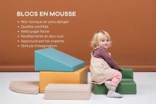 Blocs de construction mousse pour bébés et enfants. Non toxiques, sans BPA & phtalates, idéals pour l’équilibre, la créativité, et le développement moteur.