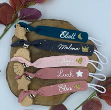Attache tétine enfant, bébé, personnalisé, double gaze de coton