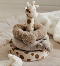 Ce doudou est l'ami inséparable de votre bébé dès la naissance et le réconfort en cas de besoin. Cette girafe en tissu bouclette est parfait pour câliner au lit, apaiser en déplacement et jouer dans le parc. Ce doudou offre de nombreuses possibilités de préhension surprenantes pour votre tout-petit. La tête et les étiquettes séduisantes peuvent être agréablement saisies par votre bébé. De plus, une attache pratique pour la sucette est prévue. Astuce : procurez-vous un doudou supplémentaire à la maison.