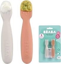 BEABA, Lot de 2 cuilleres bebe 1er age, Pré-cuillères en Silicone, Couverts Bébé, Dès 4 Mois, Forme Ergonomique, Textures Différentes, Manche Ergonomique, Terracotta/Velvet grey : Amazon.fr: Bébé et Puériculture