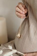 Notre bola de grossesse Gri-Gri trèfle doré à l’or fin 18 carats ou plaqué argent célèbre la maternité. Tissez un lien unique avec votre bébé grâce à la douce mélodie de ce collier de grossesse. Son délicat pendentif trèfle porte-bonheur, il veillera sur vous tout au long de vos 9 mois de grossesse.