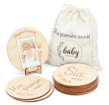 Baby Wooden Step Cards – 15 Engraved Double-Sided Discs, Step + Matching Photo Frame – Capture 15 Unforgettable Moments – Newborn Gift, Baby Room Decoration – Baby Horizon French : Amazon.com.be: Baby Products