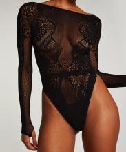Ce superbe body en maille peut être porté comme vêtement d'extérieur et comporte des panneaux profilés qui accentuent vos courbes. Vous voudrez le porter à chaque occasion ! Il y a même un string effronté à jambe haute et des manches longues avec des trous pour les pouces qui pimenteront votre look.