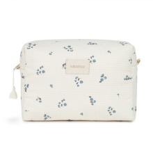 Pour les cosmétiques de votre bébé. Sac grande capacité. Flexible pour occuper moins d'espace. Extérieur en coton 100% certifié organique. Poche intérieure et latérale plastifiée blanche.