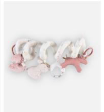 La spirale d'activités ludique Lina & Joy se fixe facilement au parc, siège auto groupe 0 ou encore poussette grâce à sa forme particulière et ses anneaux ouverts en plastique.