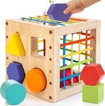 Winique Cube de tri de formes en bois, jouets Montessori pour enfants de 1 an, 8 formes multisensorielles colorées, jouet d'apprentissage du développement pour bébés filles et garçons, jouets de 1er : Amazon.com.be: Jouets
