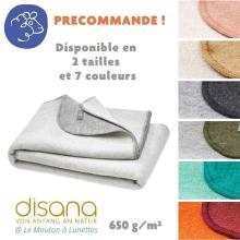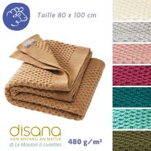 Couverture chaude pour l'hiver en laine mérinos bio de DISANA Living. Une belle idée cadeau durable ! En laine bouillie 100 ou 200x135cm
