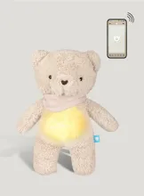 L’ourson beige myHummy 7-en-1 apaise bébé grâce à ses bruits blancs, vibrations et commande par application – pour des nuits sereines.