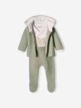 Conjunto de 3 prendas de punto mullido para recién nacido verde agua -