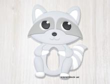 Anneau de dentition raton laveur, idéal comme jouet d'éveil et de dentition pour bébé. S'adapte sur l'attache tétine. https://cperlesbebe.fr