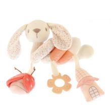 Caractéristiques : -Jouet en spirale à enrouler autour de la poussette, du siège auto ou du parc -Comprend plusieurs éléments suspendus pour stimuler bébé : un mouton doux, un hochet transparent, et un disque à rubans -Texture douce et moelleuse, agréable au toucher pour bébé -Favorise la motricité et l’éveil des sens.