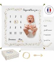 Babyfun Couverture Etape Bebe Imprimée Double Face – Tapis Mois Bebe en Français - Tapis Photo Bebe Mois - Cadeau Naissance Fille ou garçon - Accessoires et Boite Cadeau Inclus : Amazon.com.be: Bébé et Puériculture
