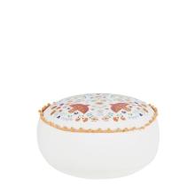 Zoe - Pouf rond en coton brodé ours et oiseaux bleu, rose et vert