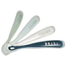Le lot de 4 cuillères 1er âge en silicone de Béaba comprend 4 cuillères flexibles avec un long manche ergonomique pour vous aider à donner le repas à votre petit!