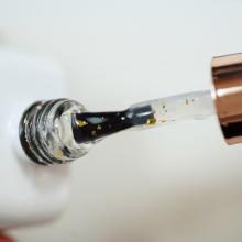 Finition brillante avec des éclats d'or sans résidu collant. 10ml Texture moyenne et peut se dissoudre à l'acetone ( Soak Off ). Temps de catalysation : 120s