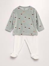 Un pyjama chaud, confortable, parfait pour les journées ou les nuits un peu plus fraîches de bébé ! - Haut en velours - Encolure ronde - Manches longues - Ouverture boutons à pressions latéral - Possible d'attacher le pantalon au haut par boutons à pressions - Pantalon en velours - Taille élastiquée - Avec pieds