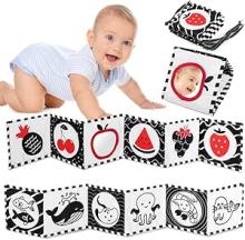 Vicloon Livre sensoriel souple pour bébé avec miroir, double face, avec 12 motifs, pliable, réutilisable et lavable, océan, fruits