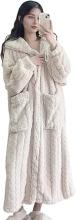 Petalum Peignoir de Bain Polaire à Capuche Femme Robe de Chambre Longue Chaude Epaisse Sortie de Douche Hiver Peluche Flanelle Douce avec Grande Poche, Blanc, XL : Amazon.com.be: Mode