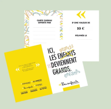 Carte cadeau de 10 € chez 'Les enfants de dialogues' à Brest pour offrir des livres/jouets à bébé au cours de sa première année.