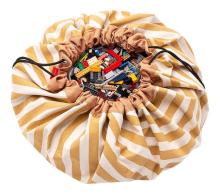 Un un tournemain, cette couverture de jeu couleur jaune moutarde se transforme en sac de rangement. Un must-have pour les jeunes parents!