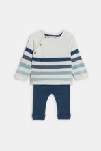 Pull maille tricot rayé et pantalon maille côtelée bleu bébé garçon