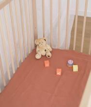 Drap housse en coton couleur Terra Cotta. Taille 70 x 140 cm. Made in France