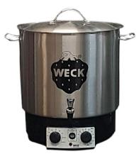 Weck stérilisateur WAT 25A- Thermostat réglable- Avec minuterie- Robinet de vidange en matière de synthèse alimentaire- Couvercle en acier inoxydableMatière: Inox/acier inoxydableCapacité: 30 litreHauteur intérieure: 31 cmDiamètre: 35 cmPuissance (en W): 1800 (W)Gratuit: livré avec grille de fond pour stérilisateur Weck.Garantie: 2 ans de garantie de réparation.