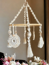 Mobile bébé en macramé, mobile de chambre d'enfant suspendu bohème avec perles en bois et plumes de macramé, mobile de lit de bébé, lit de bébé nouveau-né neutre