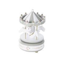 Boîte à musique carrousel lapins BULLE - manège musical ornés de petits lapins blancs en bois de genévrier qui tournicotent au son d'une douce mélodie.