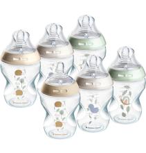 Tommee Tippee Natural Start Biberon anti-colique, tétine à débit lent pour un verrouillage naturel, 0+ mois, 260 ml, valve anti-colique, auto-stérilisant, design étang, lot de 6