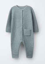 Combinaison en maille à col rond et manches longues. Fermeture boutonnée sur le devant. Poche plaquée sur le devant.