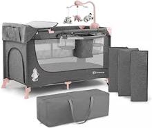 Lit parapluie, Lit bébé de la Naissance jusqu’à 25 kg, 120 x 60 cm, Facile à Plier, Carrousel avec 3 jouets, Étagères pour les couches, Sac de Transport inclus