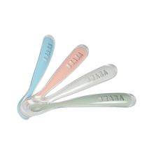 Cuillères silicone d’apprentissage 2ème age pour que bébé apprenne à manger comme un grand.