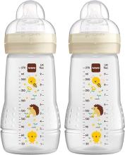 MAM Easy Active Lot de 2 biberons (270 ml) avec tétine MAM Taille 1 en silicone SkinSoft Forme ergonomique 0 mois Abeille hérisson