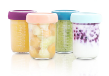 Petits pots gradués pour conserver les préparations maison de Sasha. Peuvent aussi servir de shakers pour les parents ;)