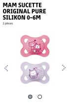 La Sucette Original Pure Silikon 0-6M MAM est la première sucette MAM climatiquement neutre. La collerette et le bouton sont en matières sûres, durables et bio-renouvelables.