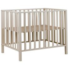 Parc enfant sur roulette plusieurs niveaux avec matelas, tour de parc et tapis de jeu. Couleur gris.