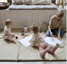 Indispensables pour faire la tambouille dans le jardin ou de la peinture avec ma sœur: une housse waterproof et une rallonge pour notre tapis de vie Mèzamé.