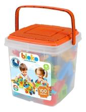 100 Bloko faciles à assembler, tellement de possibilités ! Votre petit bout a de quoi construire, déconstruire, reconstruire, se développer et s'amuser à l'infini avec le contenu de cette boîte à poingée et couvercle en plaque de base orange.