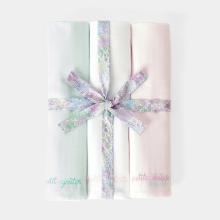 Complétez le premier trousseau de bébé avec ce joli lot de langes. En coton doux et léger et joliment brodés, ces langes sont pratiques pour protéger les vêtements de bébé lors des repas, le changer ou en guise de doudou. Présentés avec un ruban en tissu Liberty, ils seront parfaits pour un cadeau de naissance.