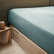 Drap housse gaze de coton (180 x 200 cm) Gaïa Bleu canard