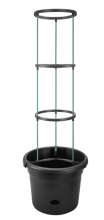 Pot pour un plant de tomates. Nos jeunes apprentis-jardiniers-mangeurs-de-tomates (qui d'ailleurs n'en laissent pas à leurs parents) seront ravis de pouvoir planter leurs tomatiers dans ces pots. L'armature est très pratique pour éviter l'effondrement habituel des plants de tomates, tout en laissant un accès facile aux petites mains pour cueillir les tomates.